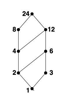 Let us consider the set of all factors of 24, denoted as , with the relation of divisibility denoted by . This relation states that for elements and in , we write if divides without a remainder.