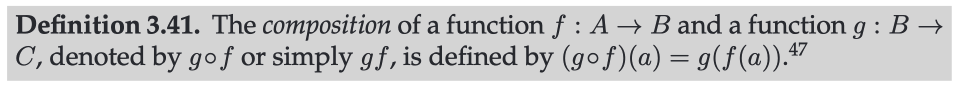 This composition can also be denoted as (if we look at it from the relation standpoint), which means that we first apply to and then apply to the result. For more details on the composition of relations, see Composition of Relations.