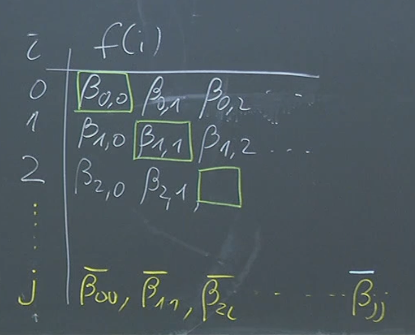 - Uniqueness: However, there cannot exist any natural number such that . This is because is constructed to differ from in at least one bit (actually the -th bit) for every natural number .