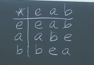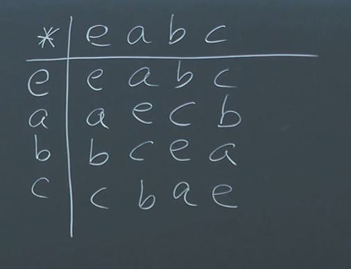 Let , where is the identity element. The first row and column are determined by the identity property. However, there’s no longer a unique way to complete the table to satisfy the group axioms.