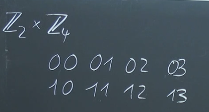 The group has elements, which are ordered pairs with and . The operation is component-wise addition modulo 2 and modulo 4, respectively.