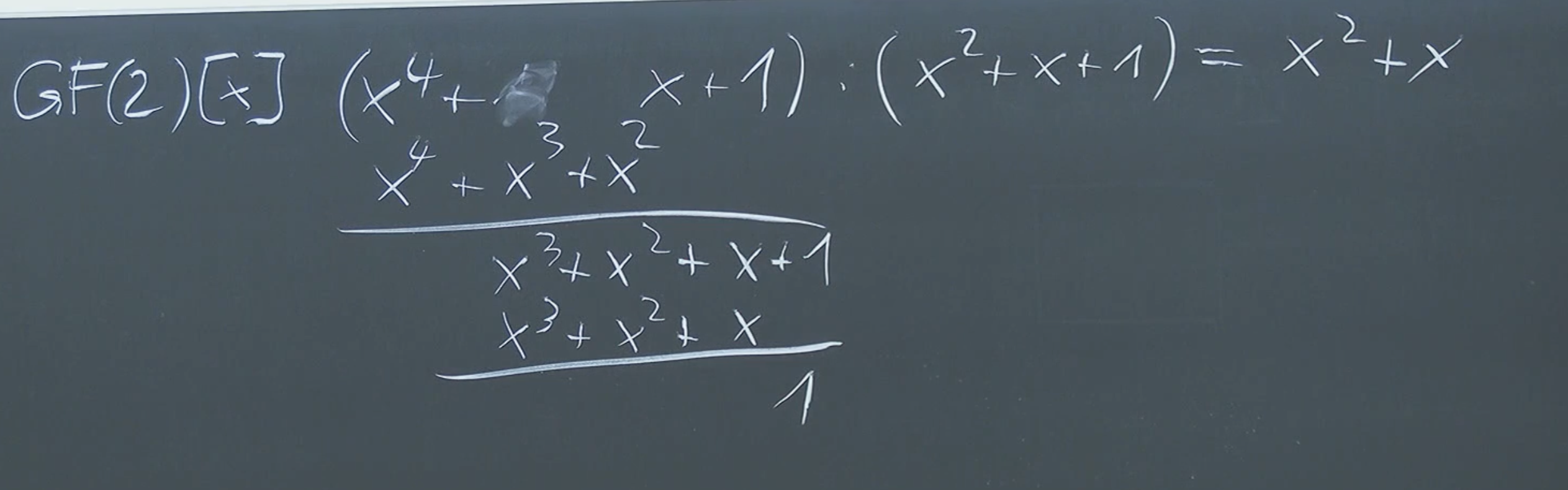 Modulo an Irreducible Polynomial: Similar to modular arithmetic with integers, we introduce the concept of modular arithmetic with polynomials. We choose an irreducible polynomial in . A polynomial is irreducible if it cannot be factored into a product of lower-degree polynomials in , analogous to prime numbers in integers.