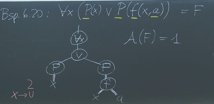 As discussed previously, we need to define both syntax (what constitutes a well-formed formula) and semantics (how to interpret and assign truth values to formulas). Semantics is defined by the valuation function: or , which requires the concepts of matching interpretations and free variables.