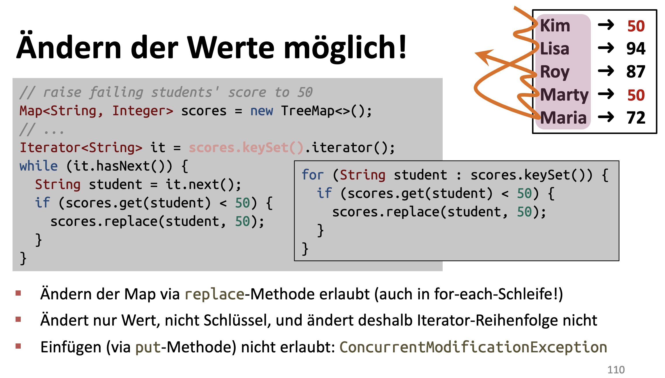 Now you might ask why does “Kim” not get overwritten by “Kim”. The reason is because in Sets (like TreeSet) the first instance stays but when you .put(k,v) then you always overwrite the previous entry.