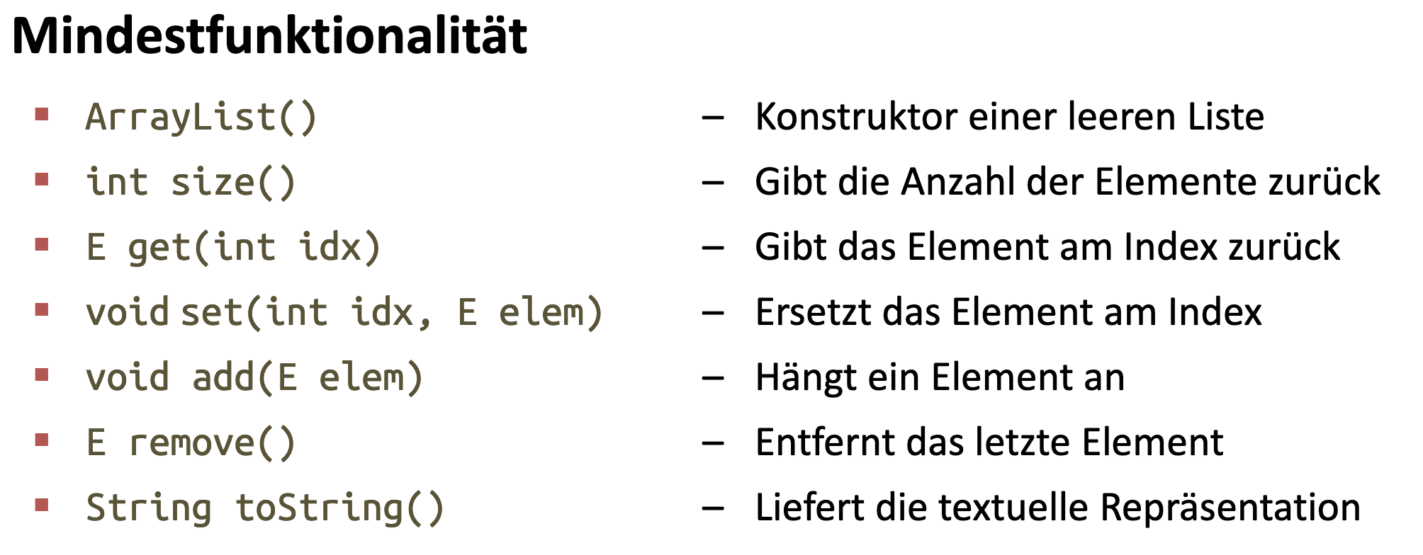 ArrayList<E>. - Minimal Functionality: We’ll focus on basic methods: