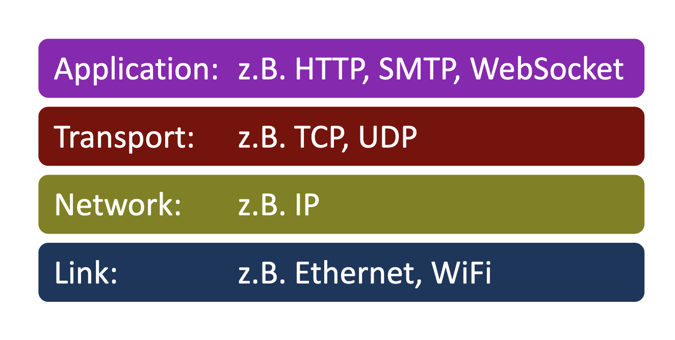 - Application Layer: Where applications (like web browsers, email clients, and our chat application) interact with the network. Protocols at this layer include HTTP, SMTP, and WebSocket.