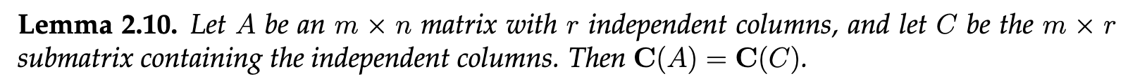 Now, let’s consider the span of the independent columns: . By successively adding the dependent columns , the resulting span remains the same: