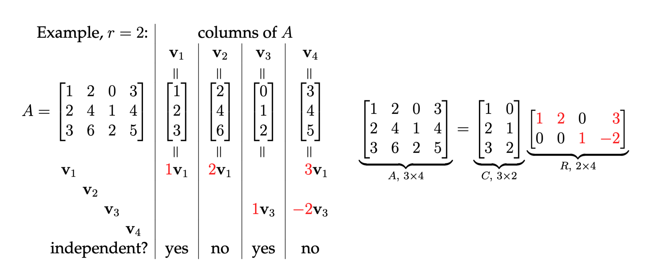 - C: A smaller matrix containing only the independent columns of . These columns form a solid foundation, acting as a basis for the entire column space of . Think of them as the “essential” building blocks.