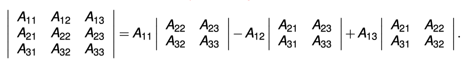 Lemma (Laplace Expansion): The determinant of a matrix can be computed by expanding along any row or column using cofactors. Expansion along row :