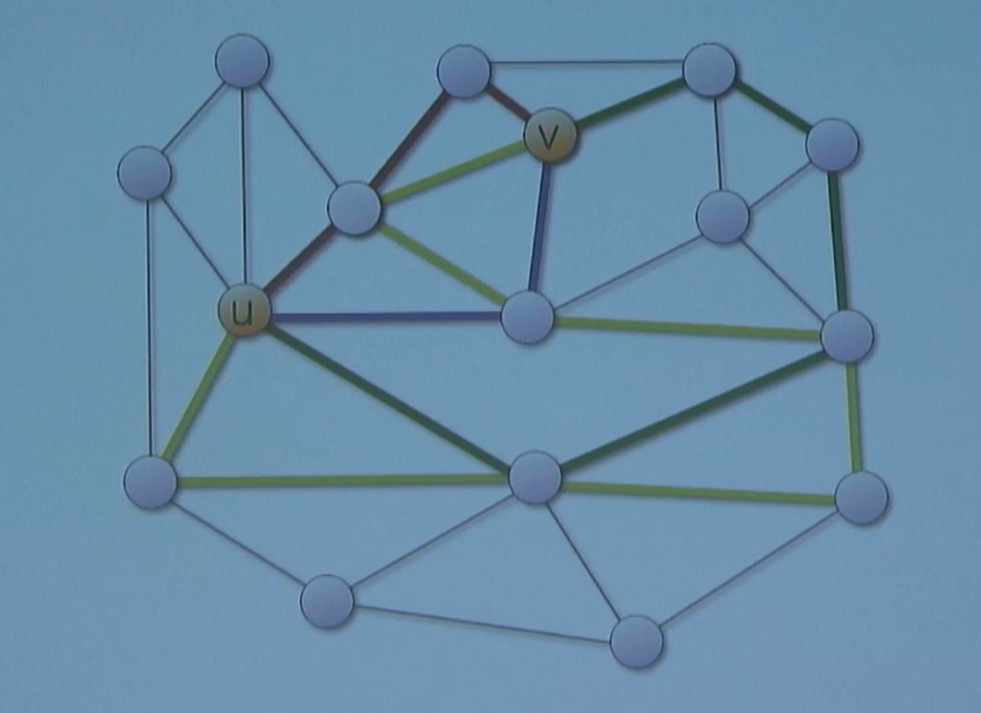 This shows that removing 3 edges doesn’t suffice to disconnect u and v. The above example also shows us the relationship between connectivity measures.