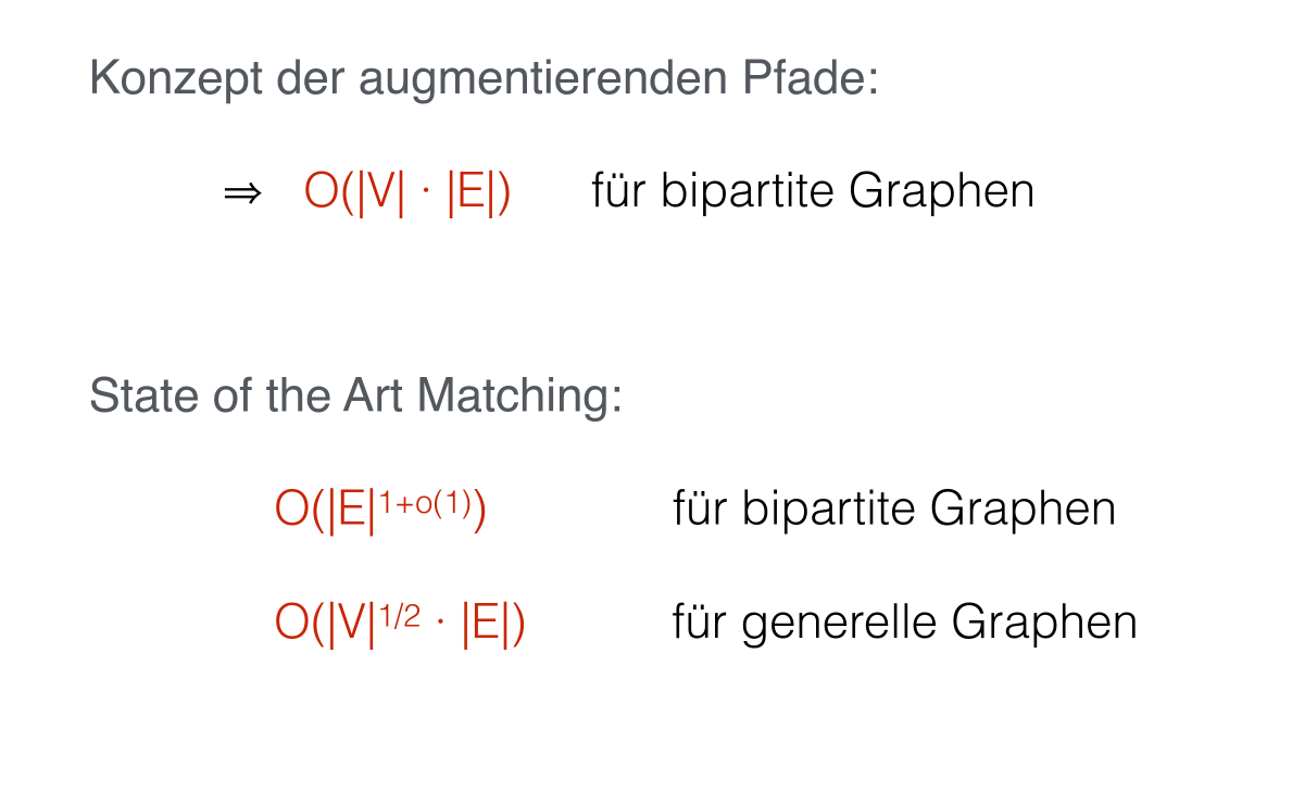 General Graphs: In general (non-bipartite) graphs, finding augmenting paths is more complex due to the possibility of odd cycles (“blossoms”). Edmonds’ Blossom algorithm is a more sophisticated algorithm to find augmenting paths in general graphs. It has a time complexity of per augmentation, leading to an overall complexity of or with more refined implementations.