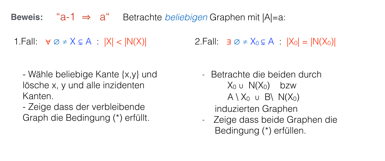 Let . Hall’s condition for requires , which simplifies to . This means vertex must have at least one neighbor in . If is not empty, we can choose any neighbor and form a matching . This matching saturates , and the base case is established.