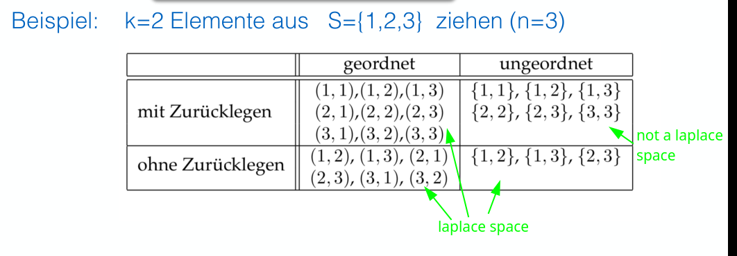 Key Takeaway: When calculating probabilities, especially involving multiple steps or components, it is often best to define the sample space such that it represents the most elementary, equally likely outcomes (a Laplace space), even if it’s more detailed than the final event you’re interested in.