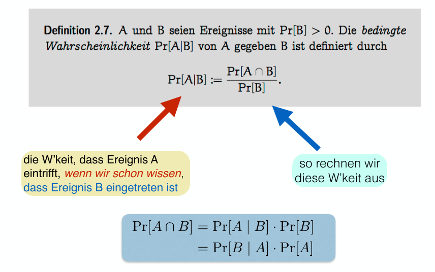 If the underlying space is a Laplace space, this can be written as: This means we restrict our attention to the outcomes where occurs (this becomes our new, smaller sample space), and then find the fraction of these outcomes where also occurs.