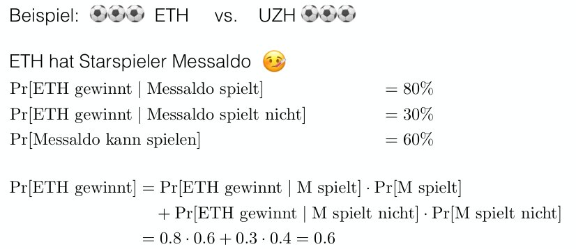 Let be the event “ETH wins”. Let be “Star player Messaldo plays”, and be “Messaldo does not play”. Assume forms a partition. Given: