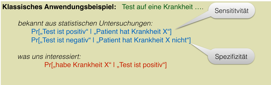 Let be the event “patient has the disease” and be “patient does not have the disease”. Let be “test result is positive”. We often know:
