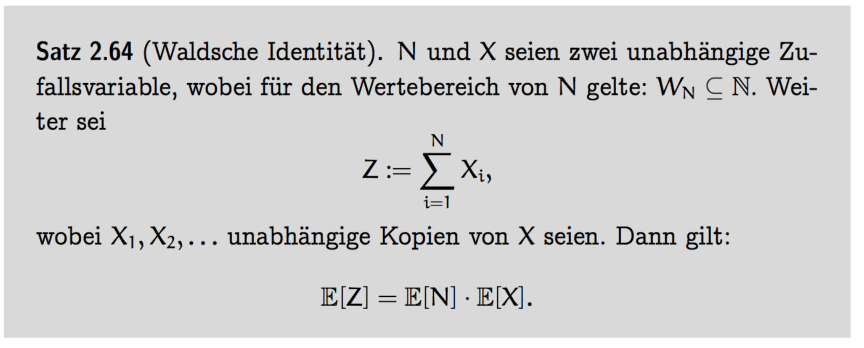 - Crucial condition: Your decision on how many games to play () must be made independently of the actual outcomes of those games. For example, cannot be “I’ll stop playing as soon as I see a big win “. If depends on the values, Wald’s Identity (in this simple form) doesn’t apply. (The concept of a “stopping time” is more general and can relax this independence, but for this version, independence of and the sequence is key).