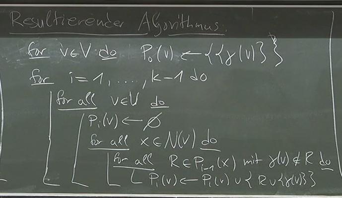 We go through each neighbor and try to extend their colorful paths by one step - checking and merging color sets.