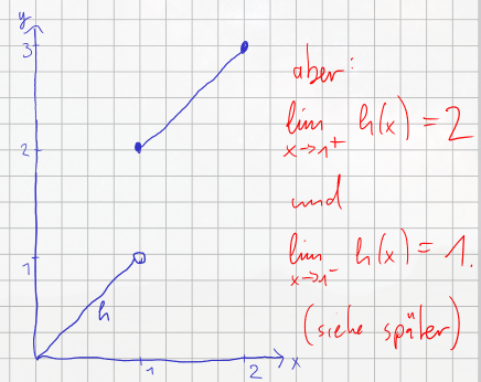 Now, , defined on . What is ? If we approach with , . But if we approach with (and ), . Since we get different results depending on how we approach , the limit does not exist. (We’ll soon formalize this idea with one-sided limits.)