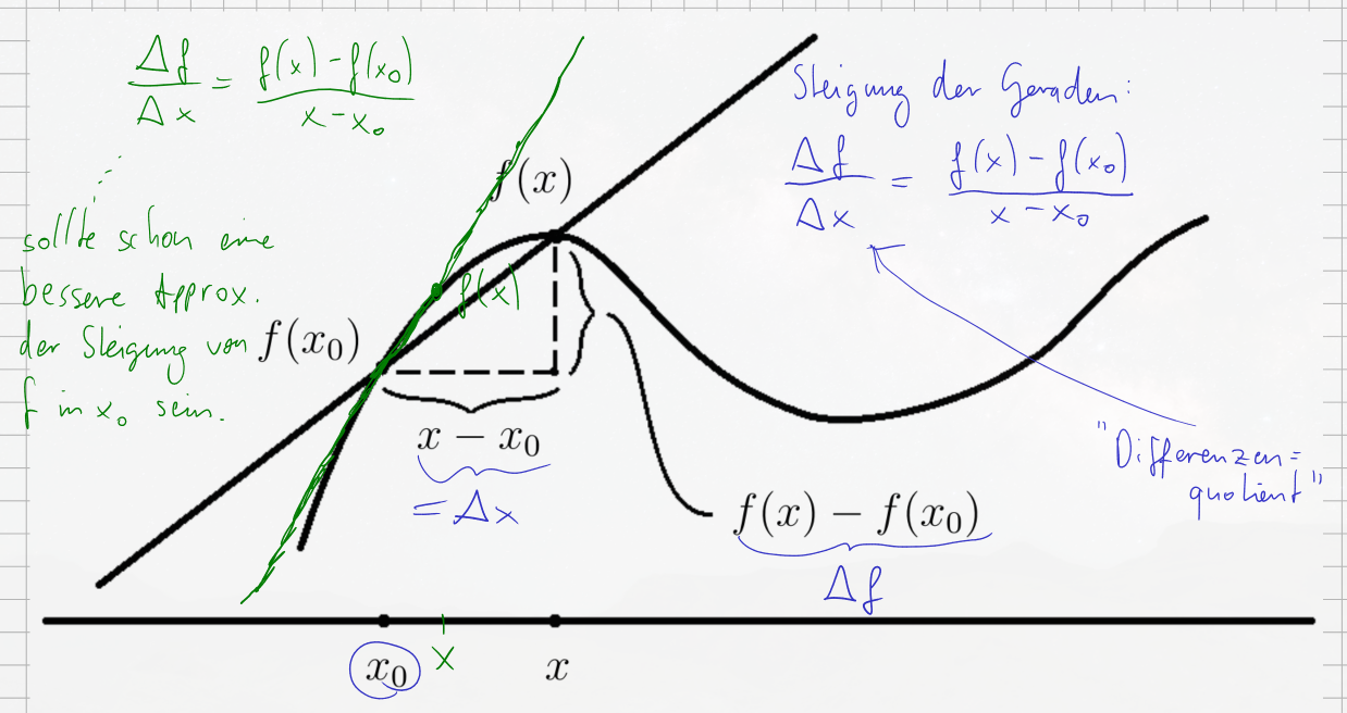 What Must Be: Now, let’s combine these ideas. Since for , and exists and equals , this means: By the definition of the derivative (Definition 4.1.1), the limit on the left is exactly . Therefore, if is differentiable at and satisfies the condition in Satz 4.1.4, it must be that .
