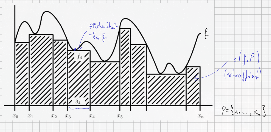 - Lower Darboux Sum (): Use as the height of a rectangle on the -th slice. The sum of these “under-rectangles” gives an underestimate of the total area.