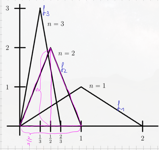 We have . So, in this case, we cannot swap the limit and the integral. The problem here is that while pointwise, the “mass” of the function (its integral) doesn’t go to zero; it just gets squeezed into a narrower and taller spike. This is not uniform convergence.