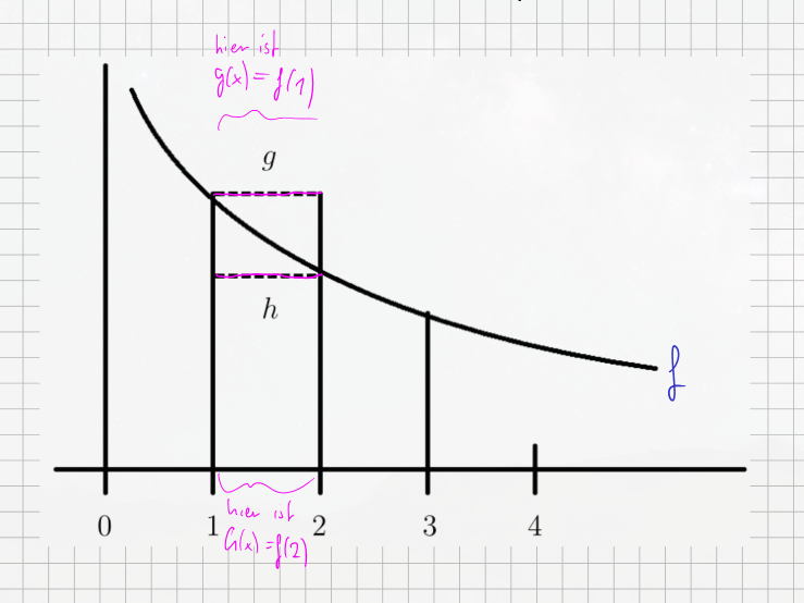 - . (The integral of from to is the sum of the areas of the “upper” rectangles, which corresponds to the sum of the series terms ).