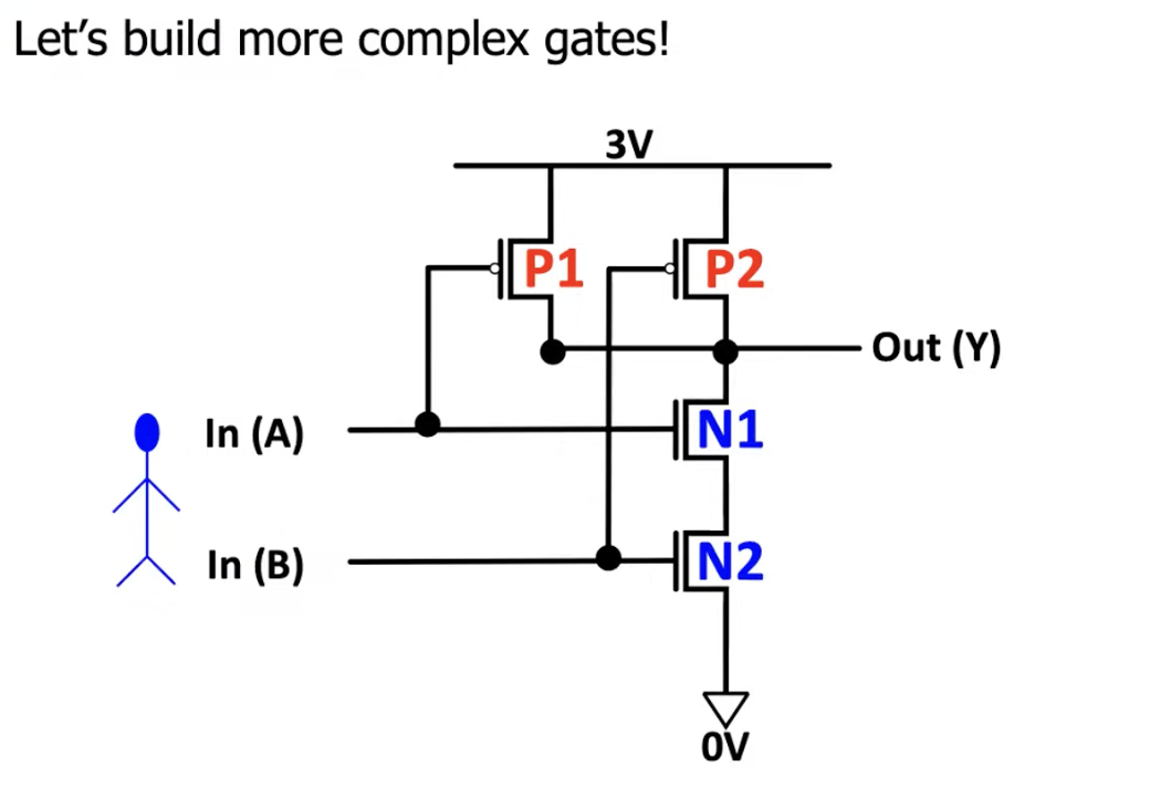 Instead of delving into the detailed physics of transistor operation, we will abstract the transistor as a simple switch that can be turned on and off. This simplified model allows us to understand how transistors can be used to implement logic gates and build more complex digital circuits.