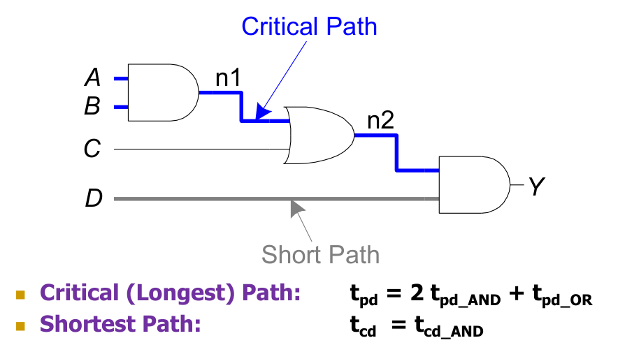 - Critical Path: Longest delay path determines the maximum operating frequency.