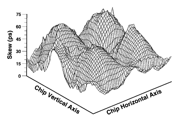 - Clock Skew Example: Spatial distribution of clock skew in the Alpha 21264 processor.