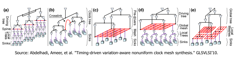 - Designers must keep skew to a minimum with intelligent “clock networks” to ensure the clock arrives at all locations at roughly the same time.