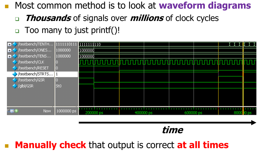 - Even if logically correct, does the hardware meet all timing constraints? (Will it operate reliably at the desired speed?)
