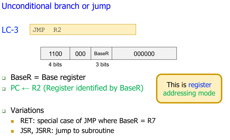 The JMP instruction in LC-3 provides an unconditional jump: