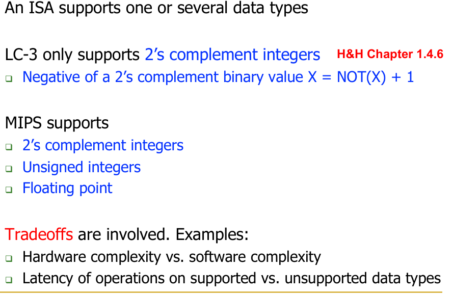 The choice of data types supported by an ISA also involves trade-offs: