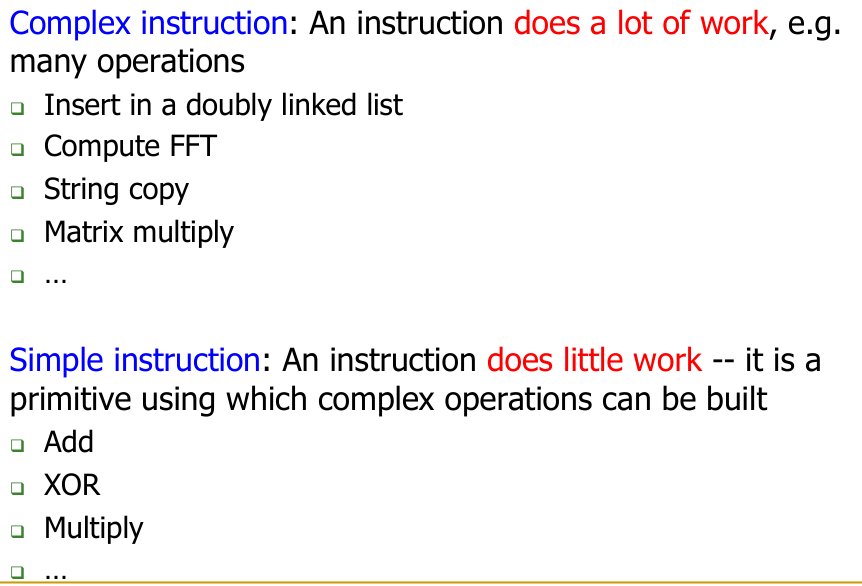 Difference between complex and simple ISA: