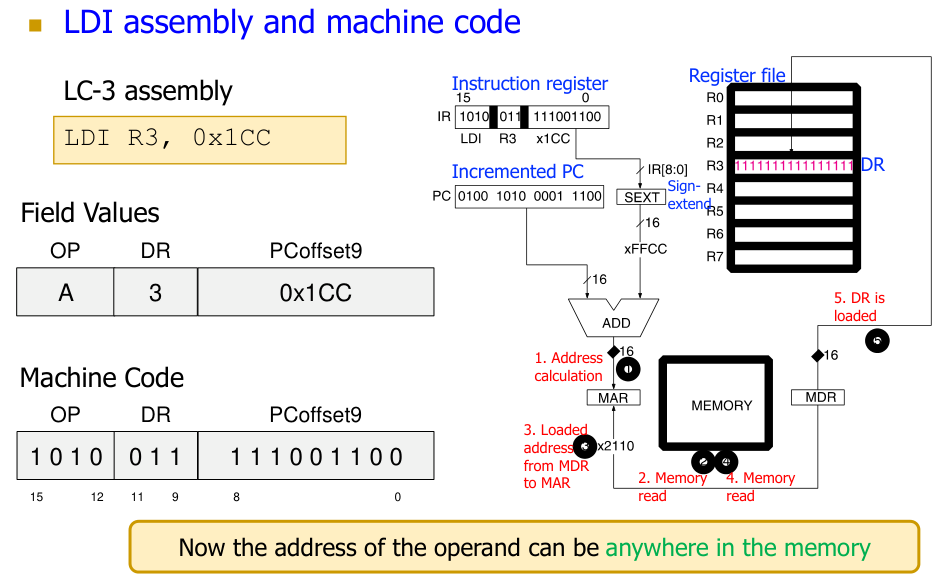LDI(Load Indirect) andSTI(Store Indirect) employ Indirect Addressing. - Address Calculation: