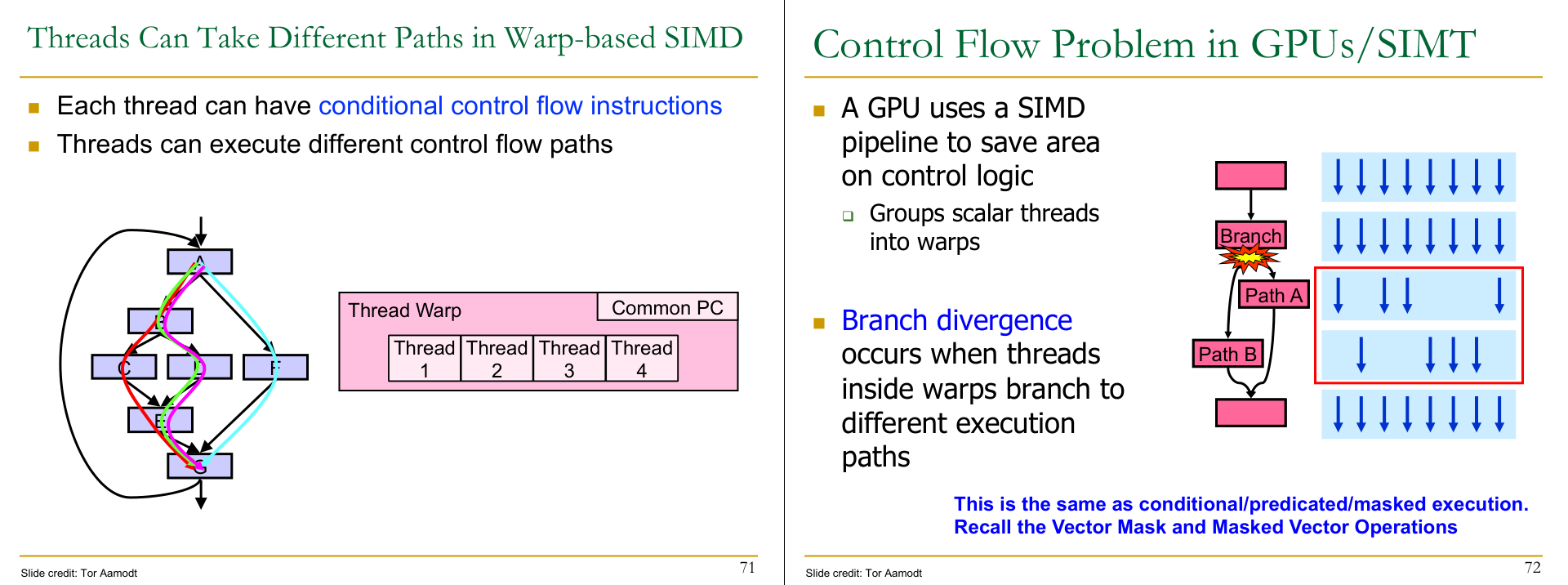 While SIMD is well-suited for regular parallelism, real-world code often contains control flow (branches). In SPMD code, different threads within the same warp might execute conditional branches based on their unique data values, leading to different threads taking different control flow paths. This is called branch divergence.