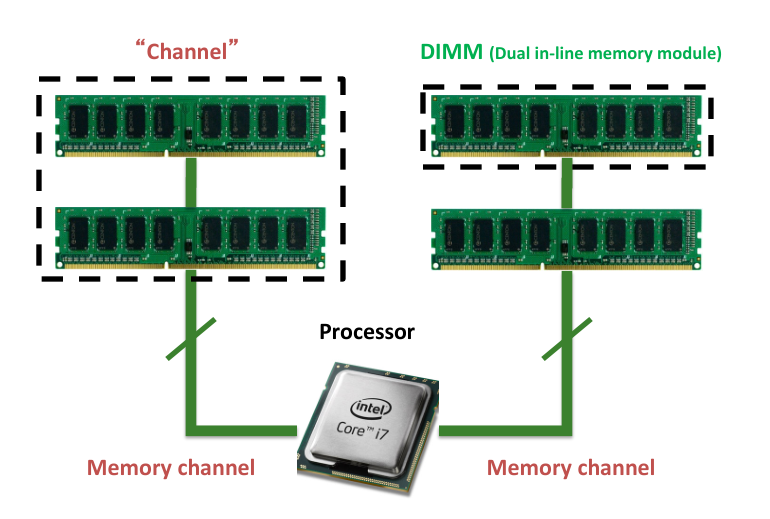 - Channels: Connect one or more DIMMs to the processor’s memory controller on the motherboard. Multiple channels increase the total memory bandwidth available to the processor.