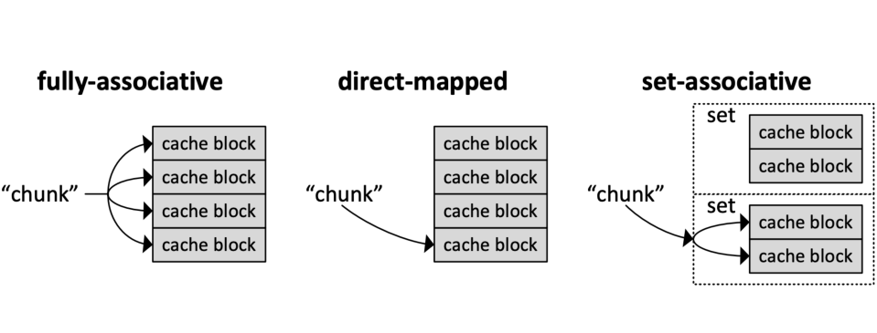 - Fully-Associative: A memory block can be placed in any location in the cache.