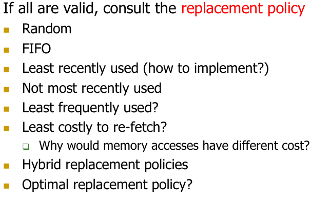 - Eviction/Replacement: If a set is full and a new block needs to be brought in (a miss), which existing block should be removed?
