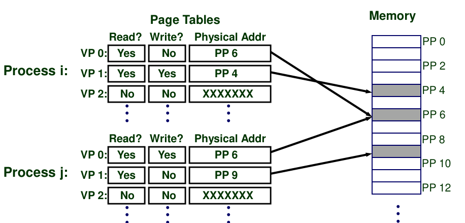 - Isolation: A process can only access physical pages that are mapped in its own page table. It cannot directly access or overwrite the memory of another process unless explicitly shared.