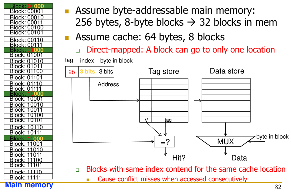 Cons: Suffers from conflict misses. If two frequently used memory blocks map to the same cache index, they will repeatedly evict each other, leading to poor performance even if the rest of the cache is empty.