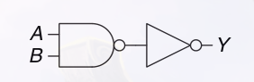Output Y is ‘0’ only if N_A AND N_B are ON (A=‘1’ AND B=‘1’).