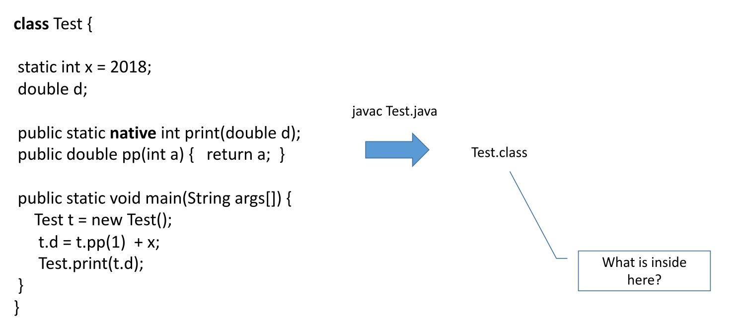 - Method Metadata: The class file specifies the number of stack slots and registers required for each method.