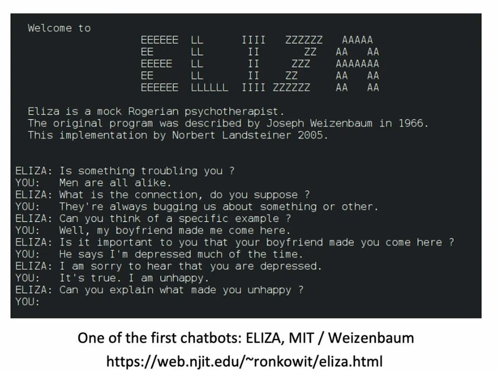 Eliza, one of the first attempts, used pattern matching techniques to simulate conversation.