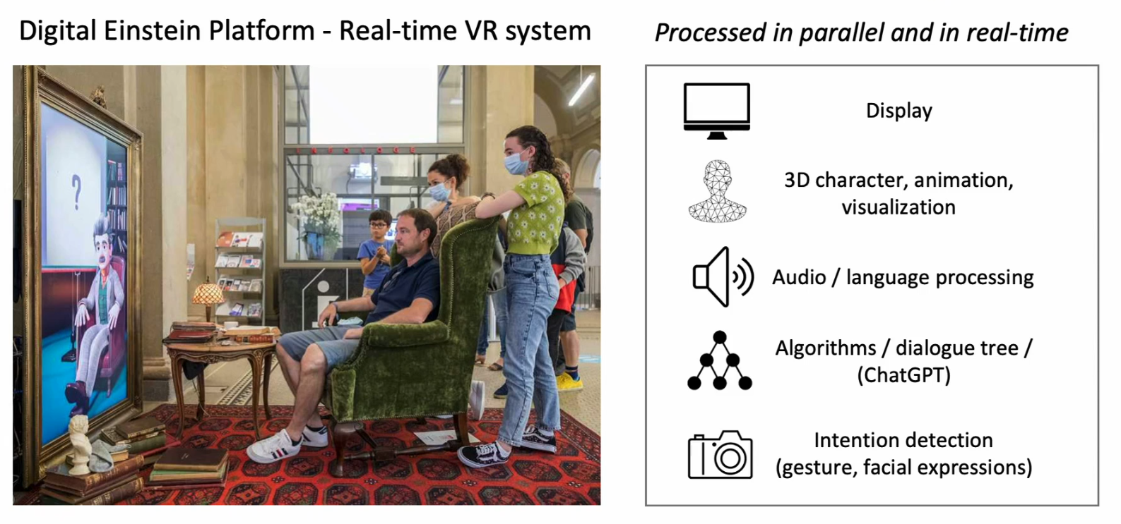 This project provides a real-time VR system to simulate conversations with Albert Einstein.