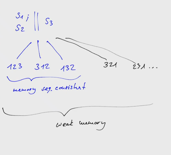 By allowing reordering, we unlock a large “space” of possible execution orderings. We went from a very strict model of sequential consistency and are now expanding it into a “weak memory”.