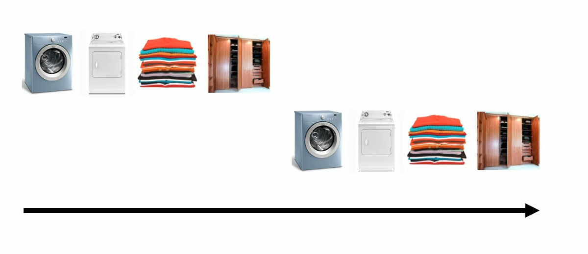 As soon as the first load is finished washing, we can move it to the dryer and start washing the second load. While the second load is washing, the first load is drying. We’re utilizing our resources (washing machine, dryer) more efficiently.