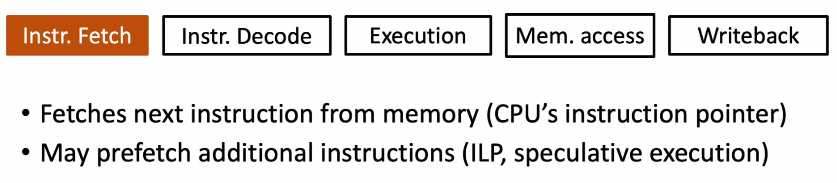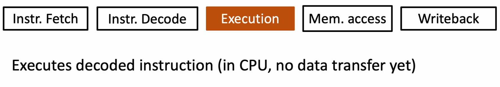 Each of these stages is handled by a separate piece of hardware within the CPU. While one instruction is being fetched, another can be decoded, another executed, and so on.