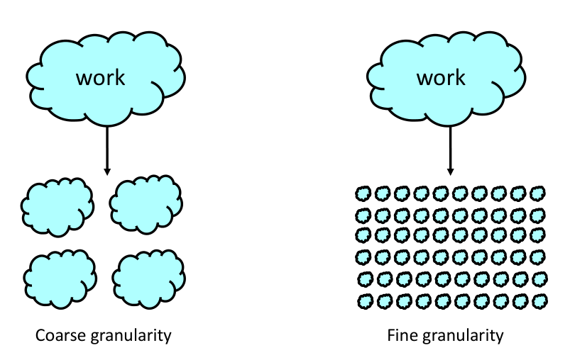 - Coarse Granularity: A few, large tasks. Think of dividing a large project among a small team of people.